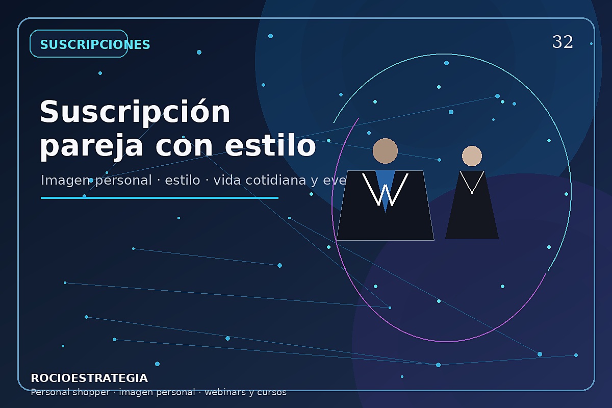 Suscripción pareja con estilo es una propuesta profesional de Rocioestrategia orientada a mejorar la imagen personal con criterios de personal shopper, asesoría estética y estilo aplicado a la vida real.